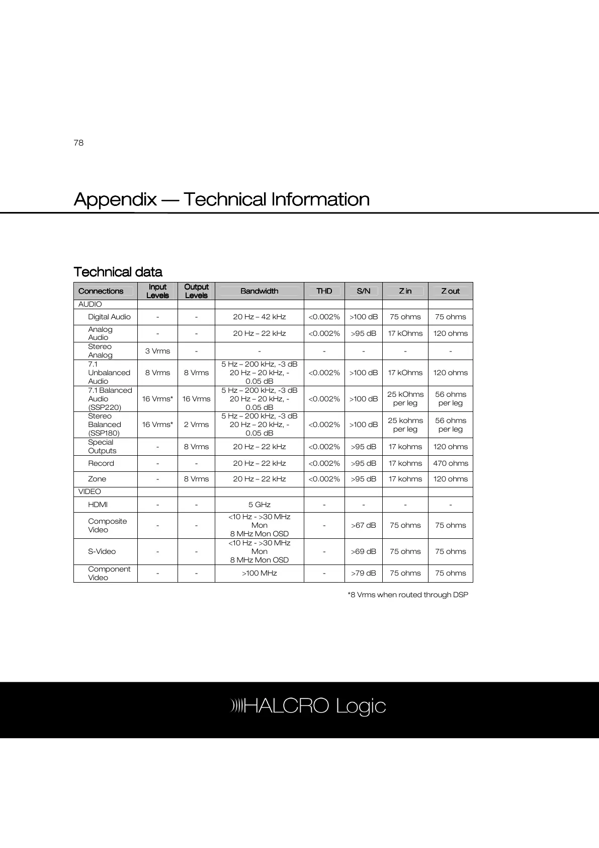 - 8 Vrms 20 Hz 22 kHz <0.002% >95 dB 17 kohms 120 ohms