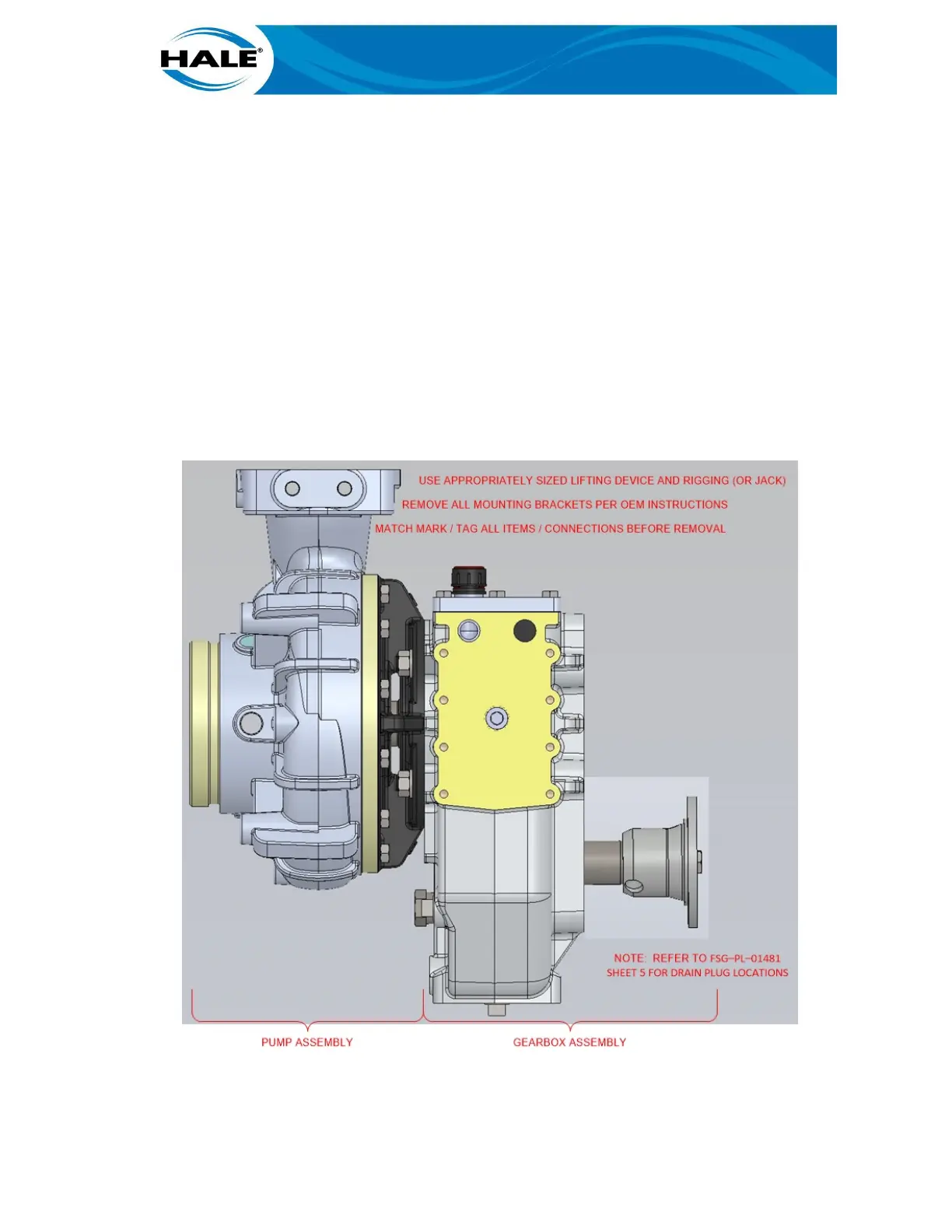 Remove ONLY items/connections required to access pump and gearbox. 3.