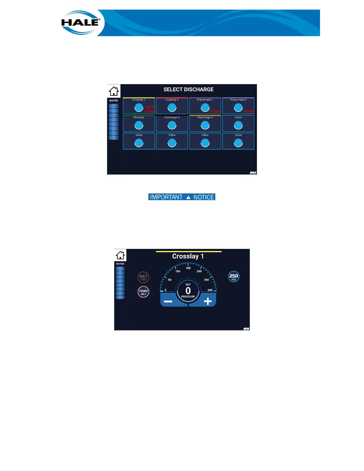 WATER ONLY, FOAM ONLY, OR CAFS. TO SELECT WATER ONLY, SWIPE THE PSI PRESET (RIGHT-