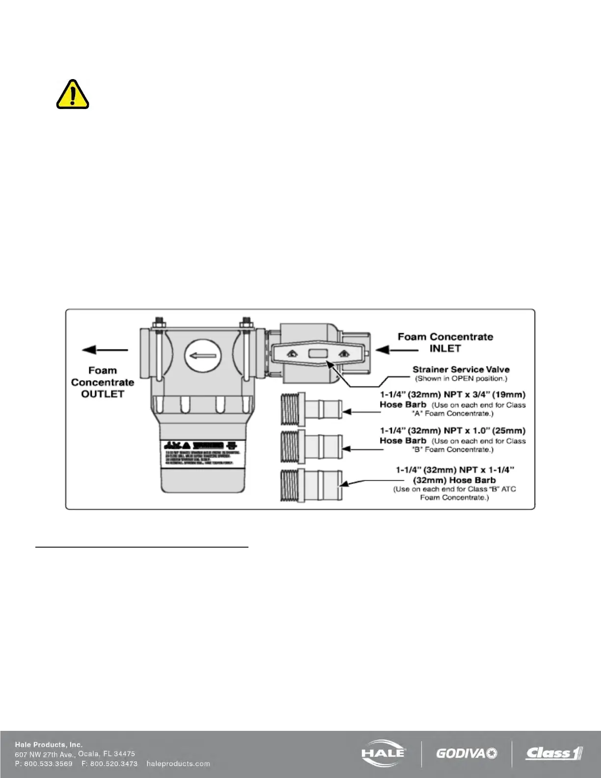 Use 3/4” (19 mm) inside diameter hose for Class “A” foam and a 1.00” (25 mm) inside diameter hose for Class “B” foams.