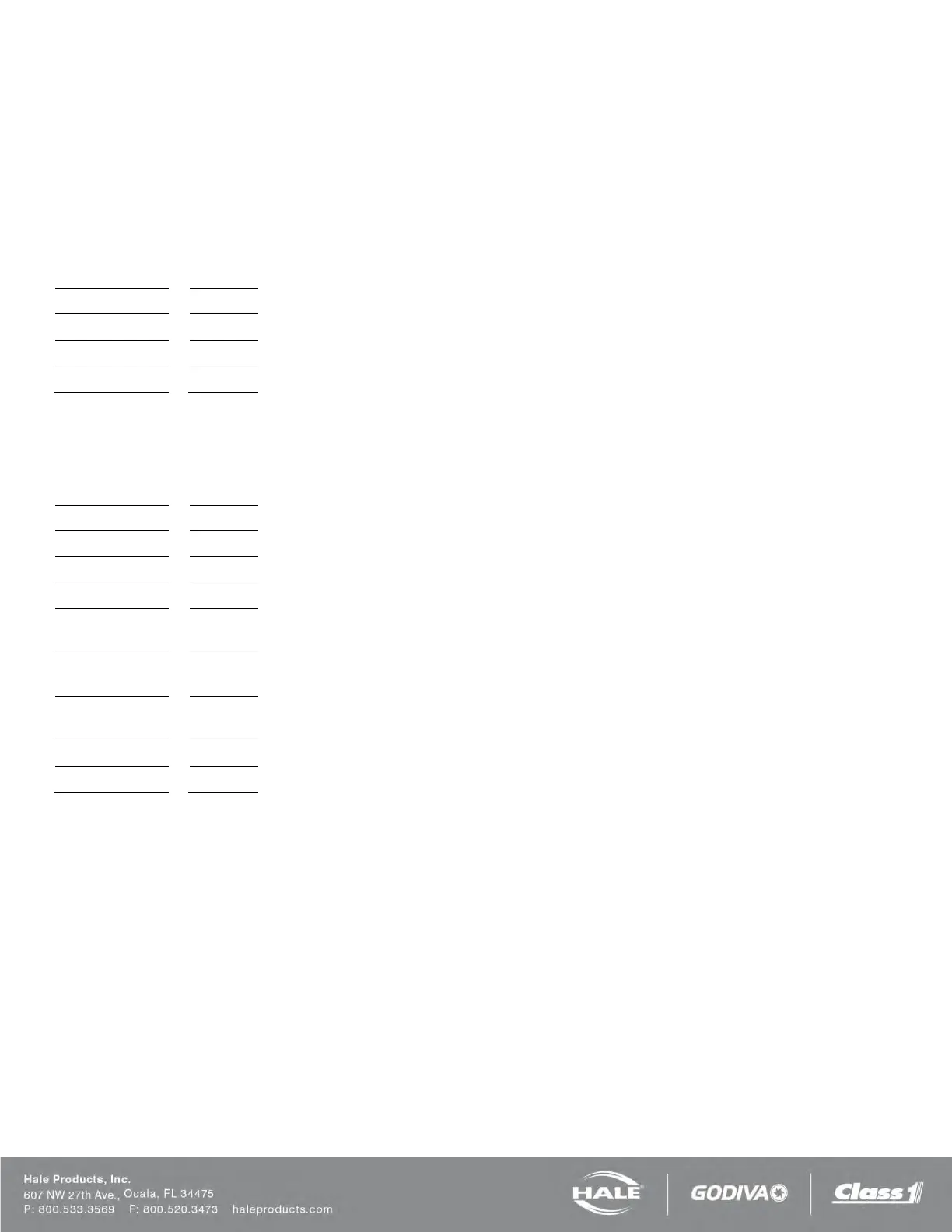 ❑ Warranty registration card filled out by end user and mailed to Hale Products.