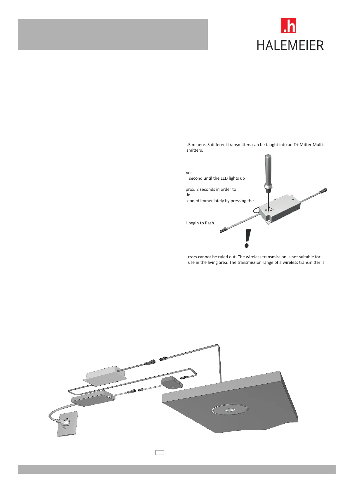 The distance between wireless transmier and MulWhite² receiver should not exceed 0.5 m here. 5 dierent transmiers can be taught into an Tri-Mier Mul-