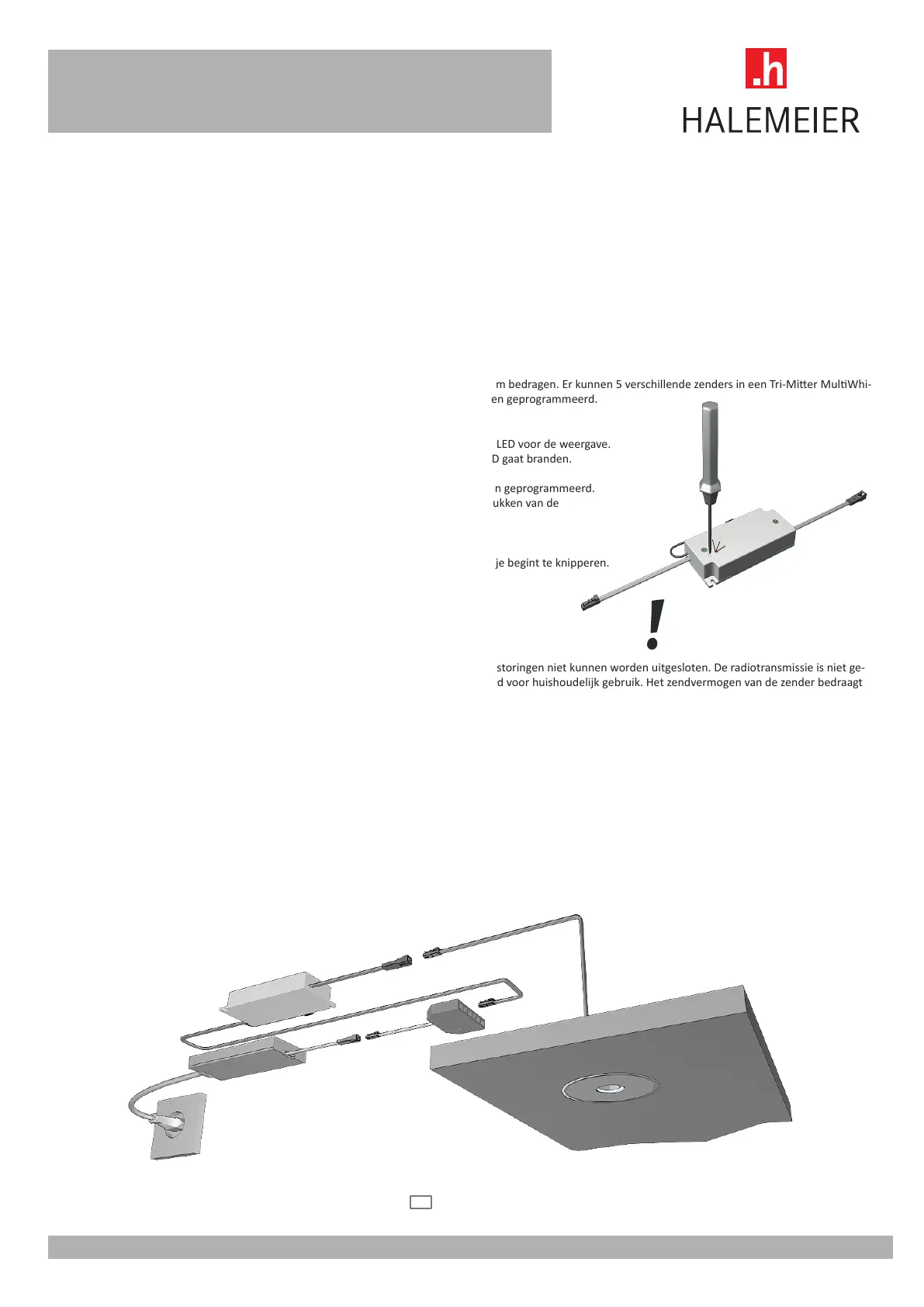 Hierbij mag de afstand tussen de zender en de MulWhite² ontvanger niet meer dan 0,5 m bedragen. Er kunnen 5 verschillende zenders in een Tri-Mier MulWhi-