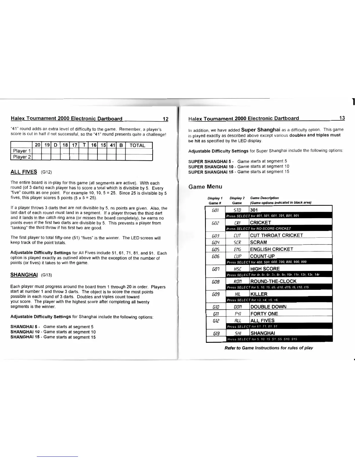 Halex Tournament 2000 - Killer (G09); Double down (G10); Double down 41 (G11); All Fives (G12)