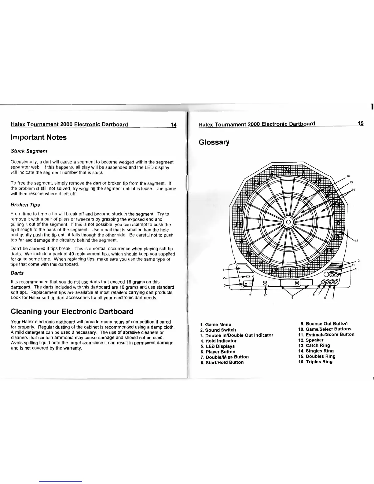 Halex Tournament 2000 - Important Notes; Stuck Segment; Broken Tips; Darts
