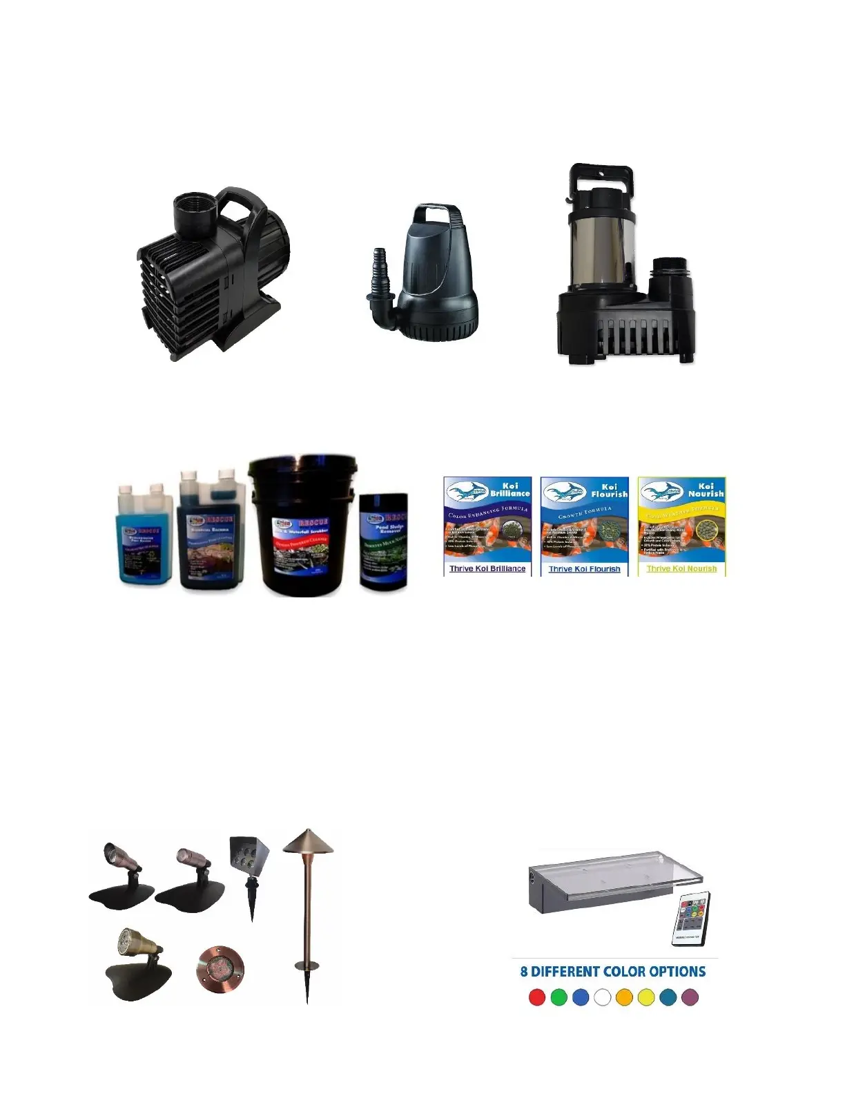 Complete range of energy efficient small statuary and fountain pumps to high flow 12,500+ GPH large