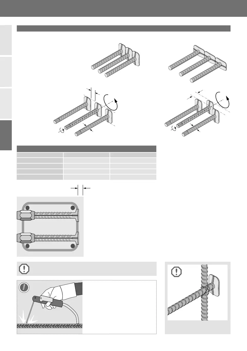 Minimalne odstępy trzpieni gwintowanych zapewniające ich montaż