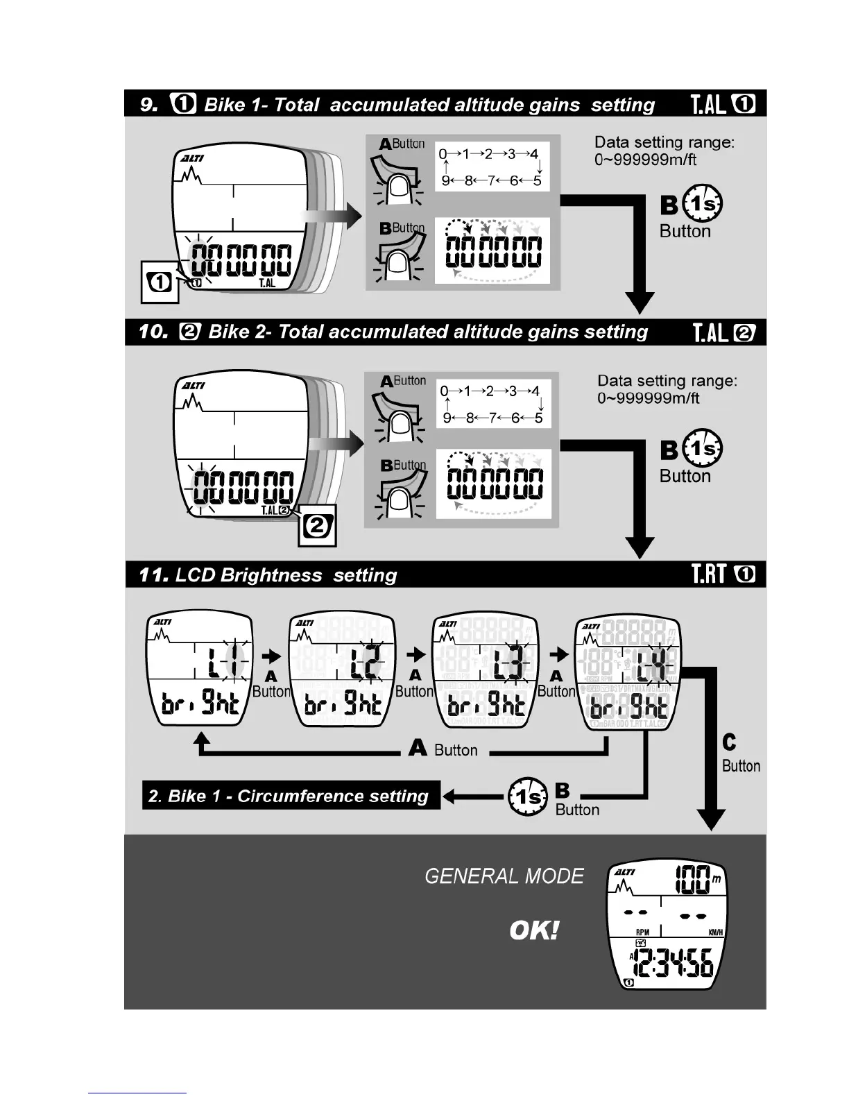 Halfords Bicycle Computer - Bike 2 Total Accumulated Altitude Gains Setting; LCD Brightness Setting