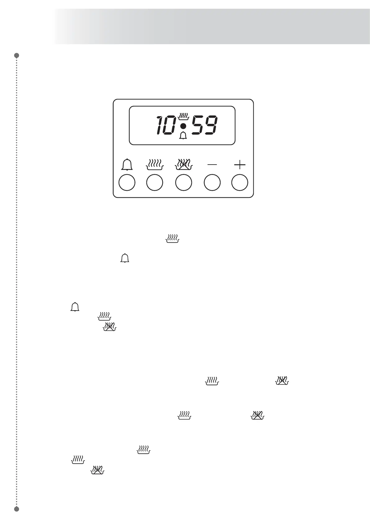 The time is set by pressing the +/- buttons. Any previously set programmes will be automatically cancelled.