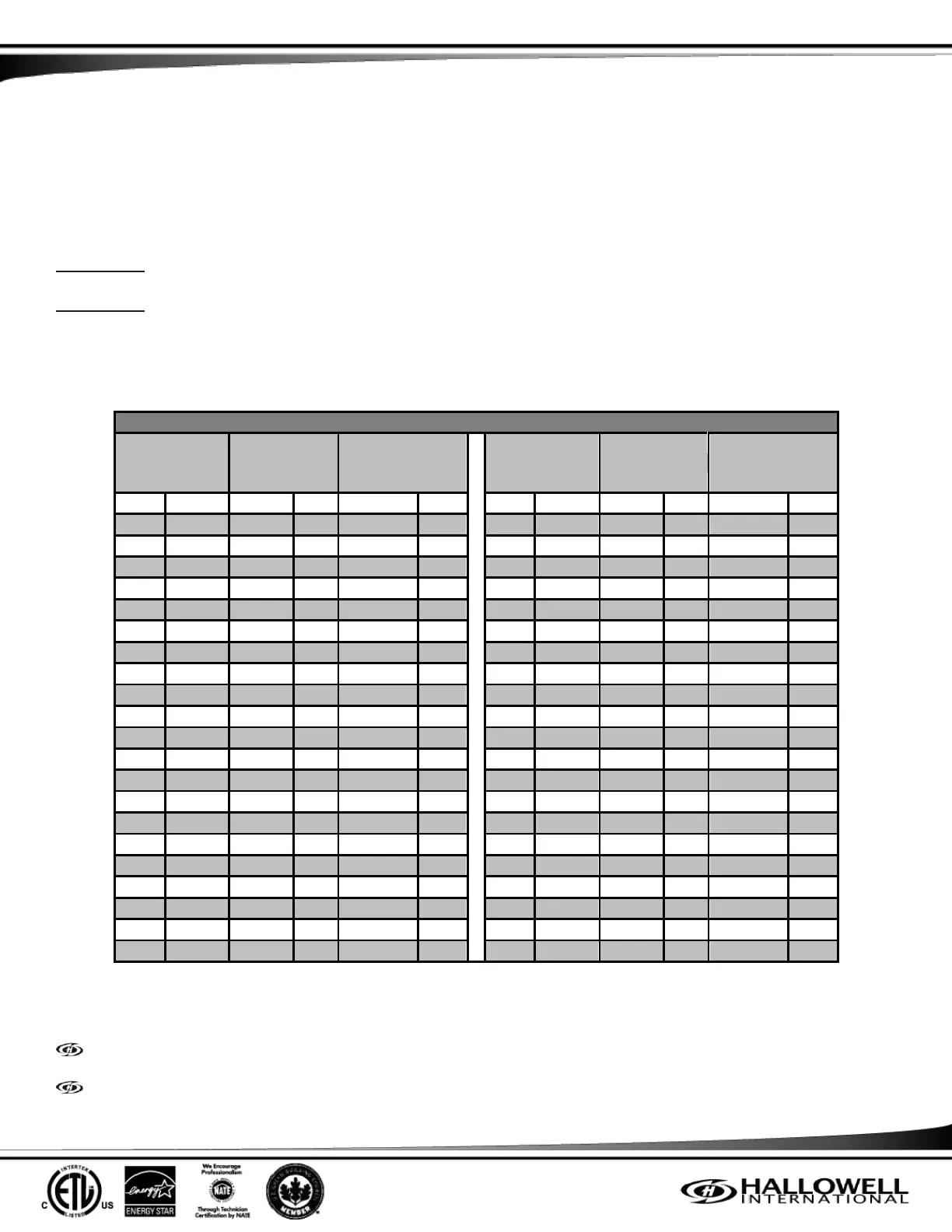 Table 1: Hallowell Acadia Line Set Charging Chart