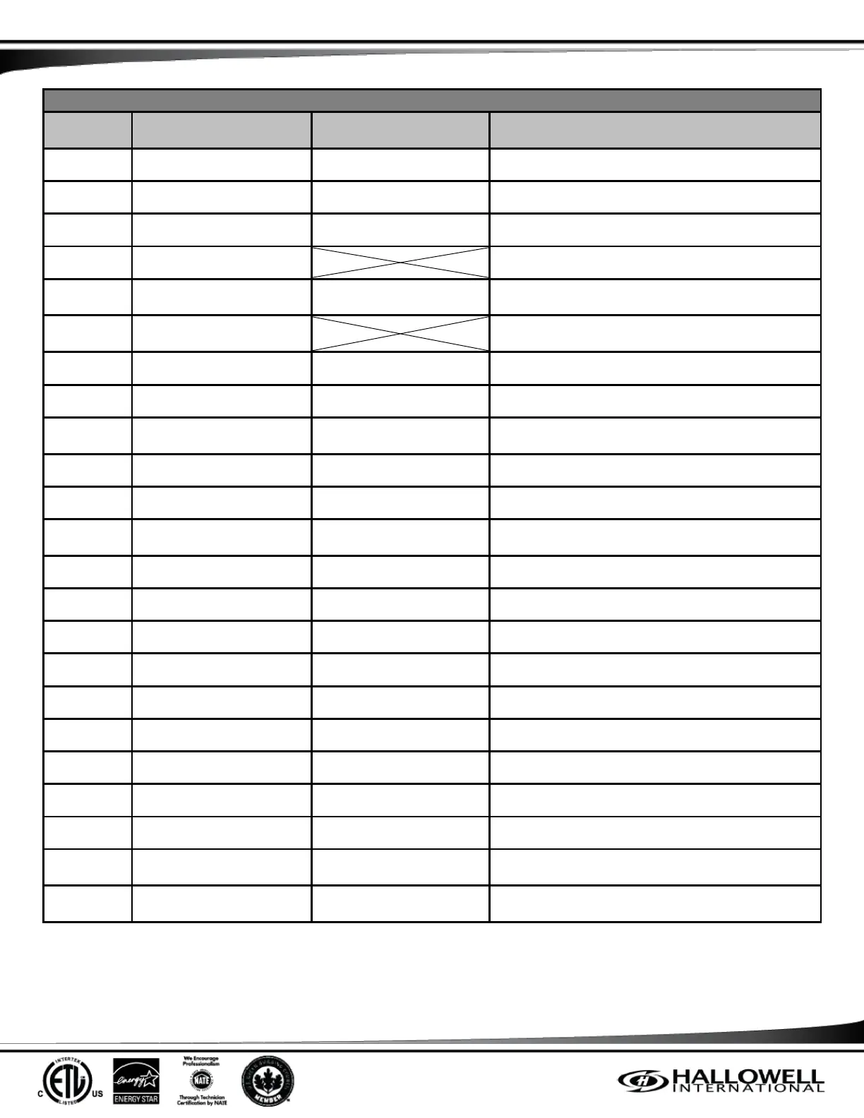 Table 14: Thermostat Settings