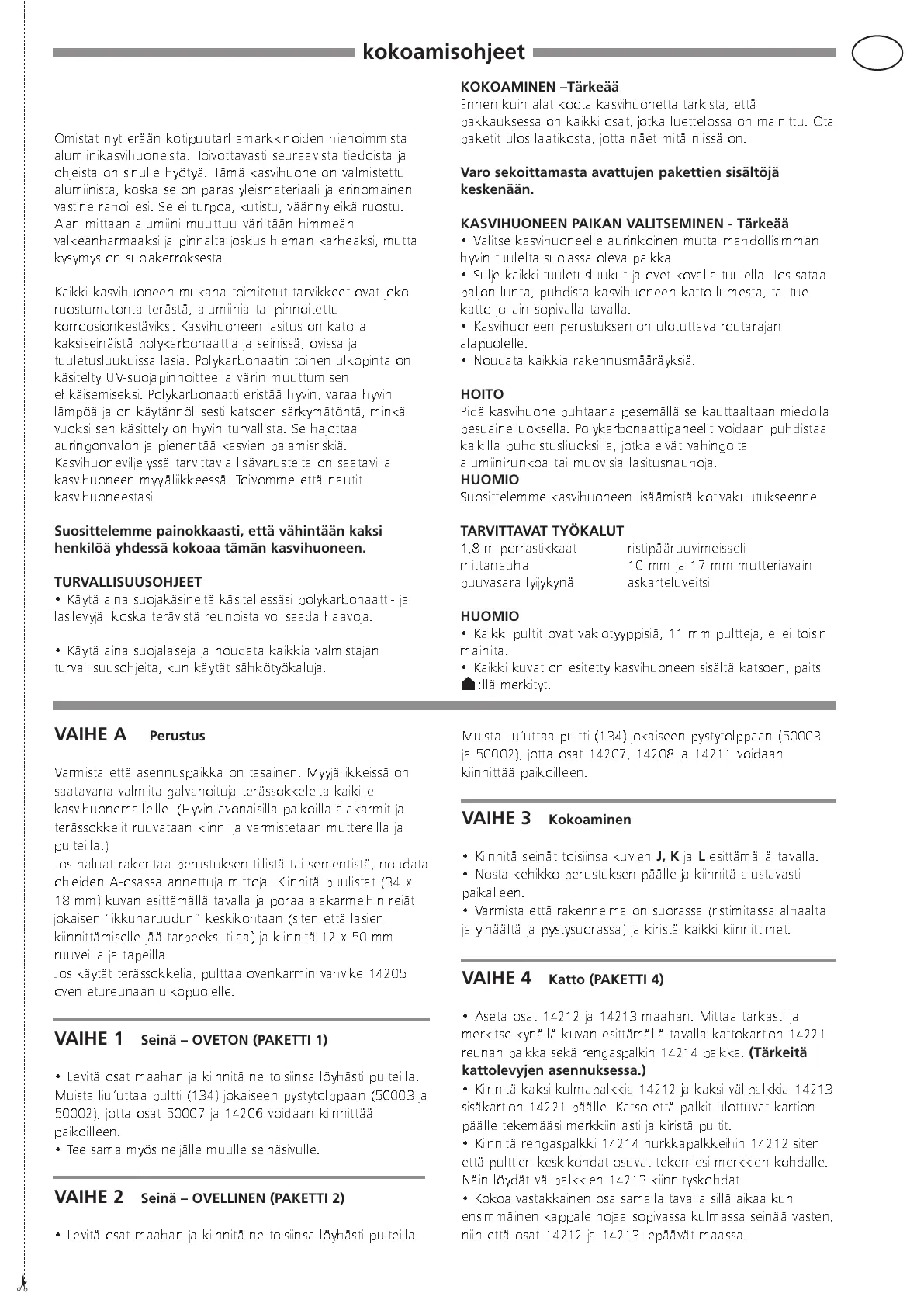 Kaikki kasvihuoneen mukana toimitetut tarvikkeet ovat joko