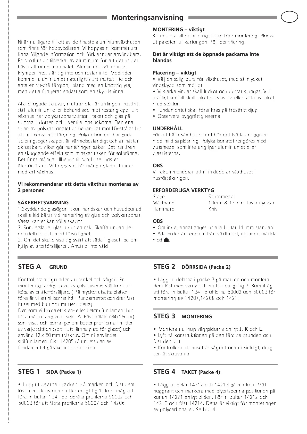 Vi rekommenderar att detta växthus monteras av