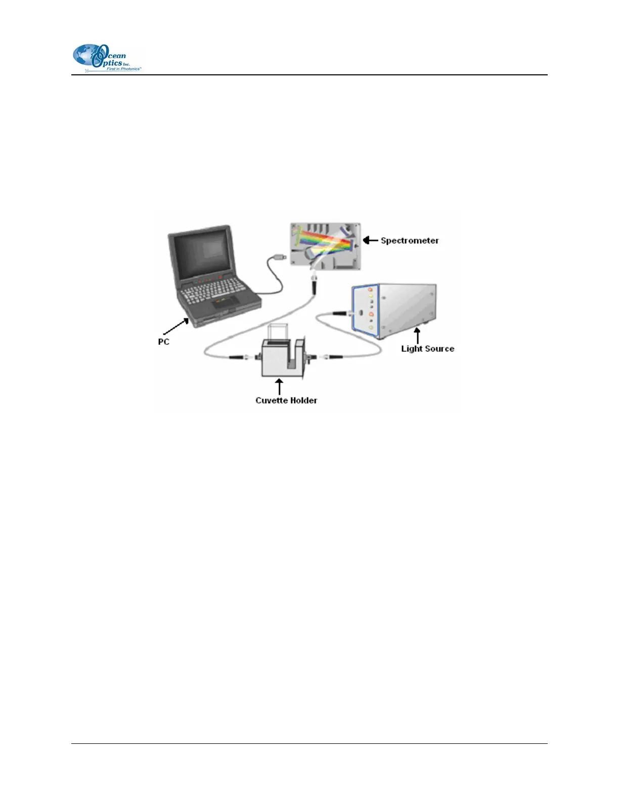 The figure below shows a typical absorbance setup. The light source sends light via an input fiber into a