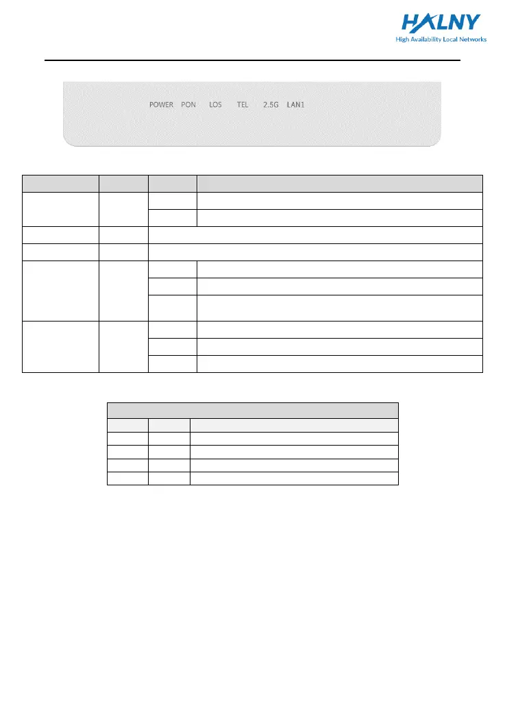Table 1. ONU LED Indication Table