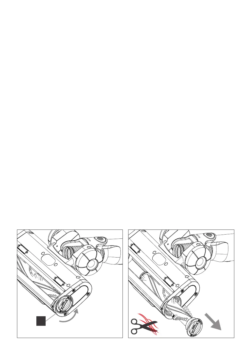Periodically, hair can become wrapped around the brush roll and should be removed