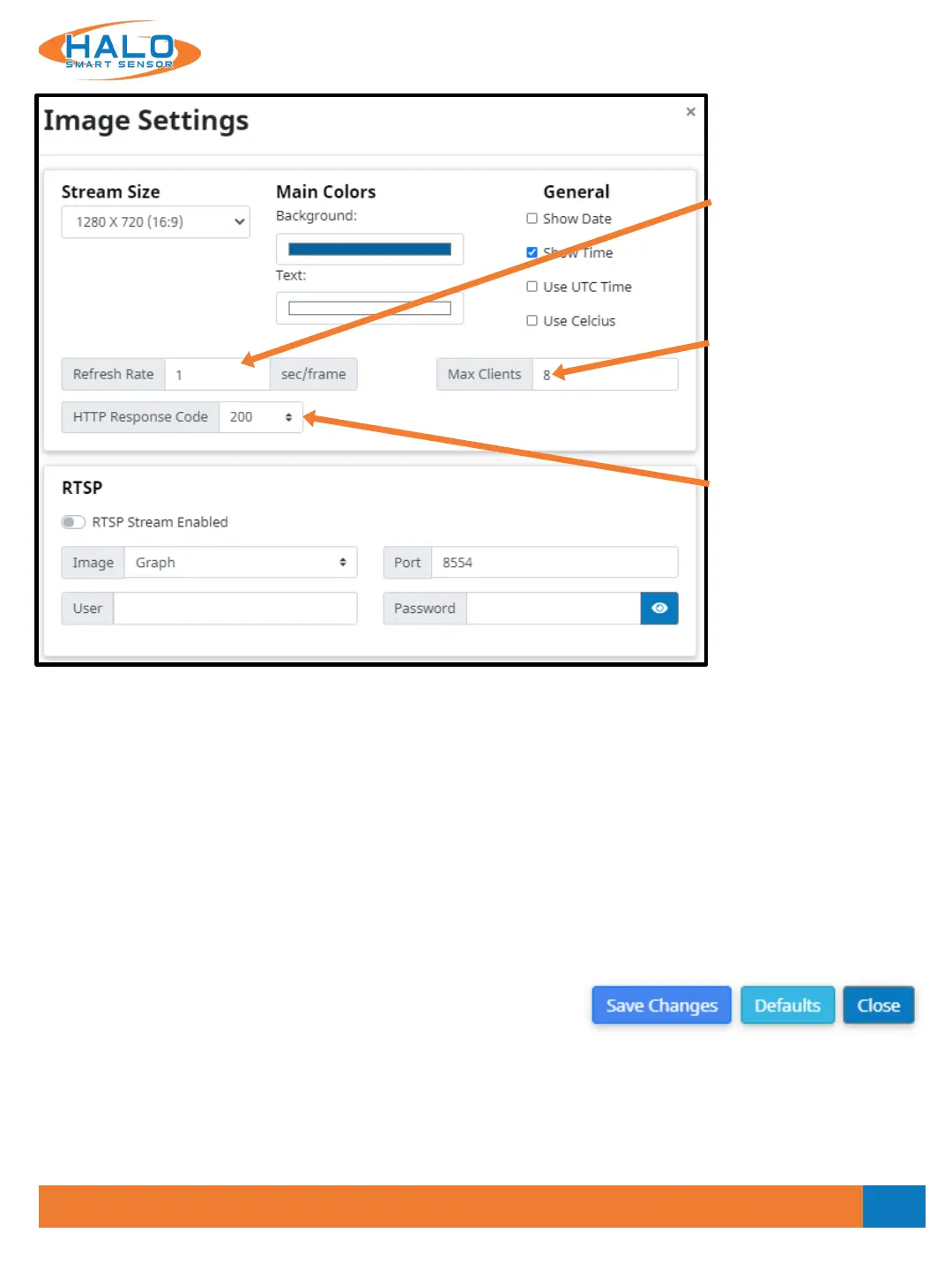 • Click the button for “RTSP Stream Enabled” to turn on this feature.