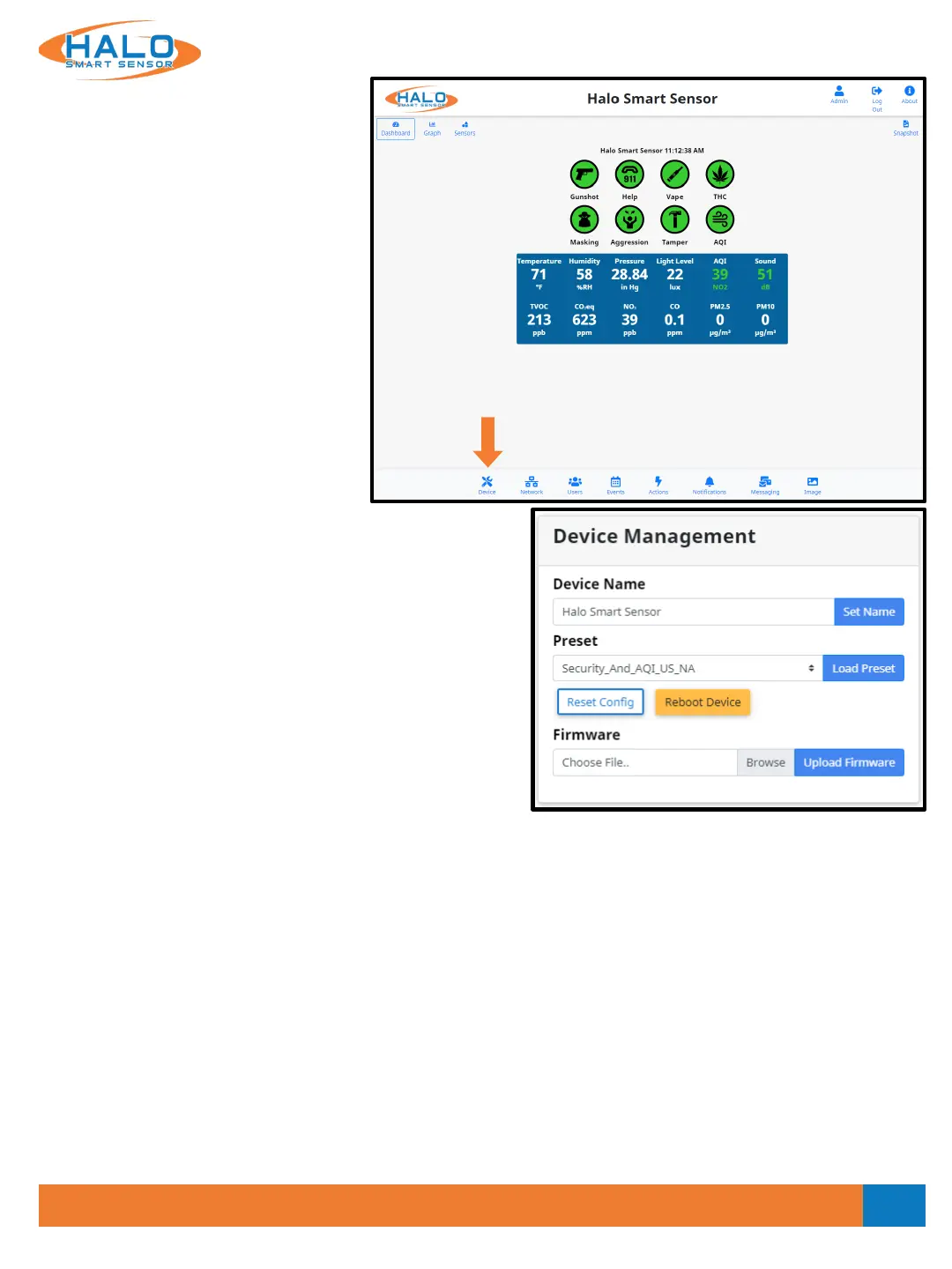 The “Device” page provides access