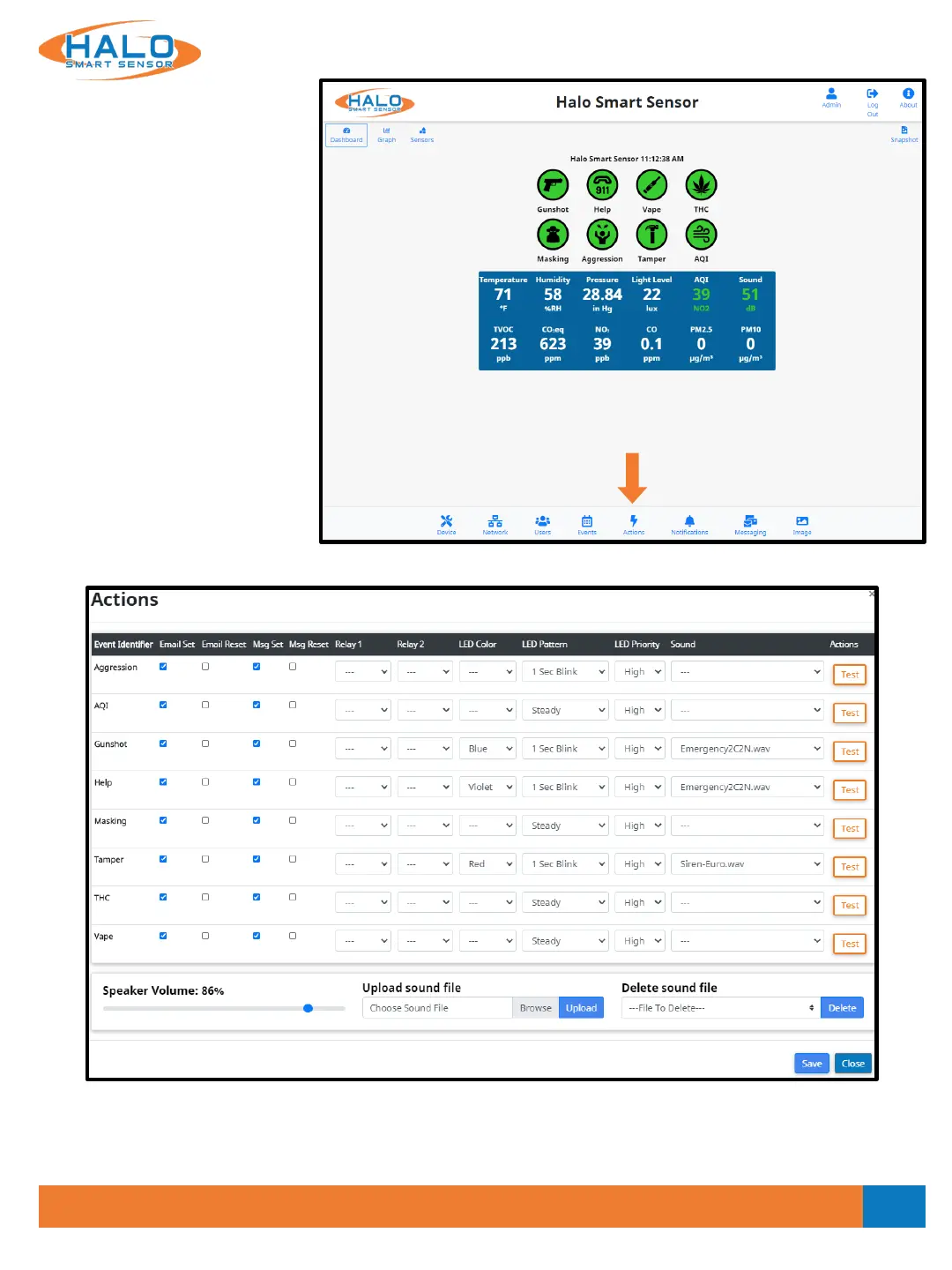 Halo IOT Smart Sensor - Action Plan Configuration; Event Actions Setup