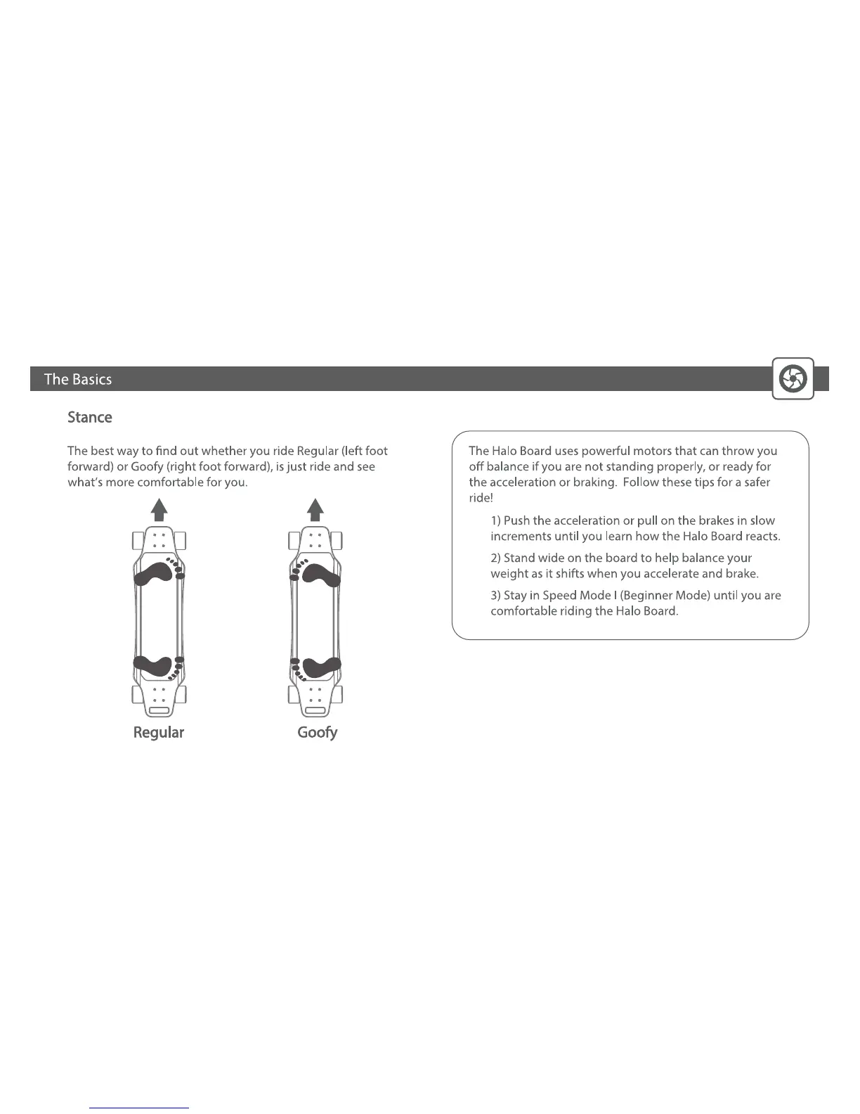 HALOBOARD Halo Board - Riding Basics and Stance; Rider Stance Selection; Initial Riding Tips