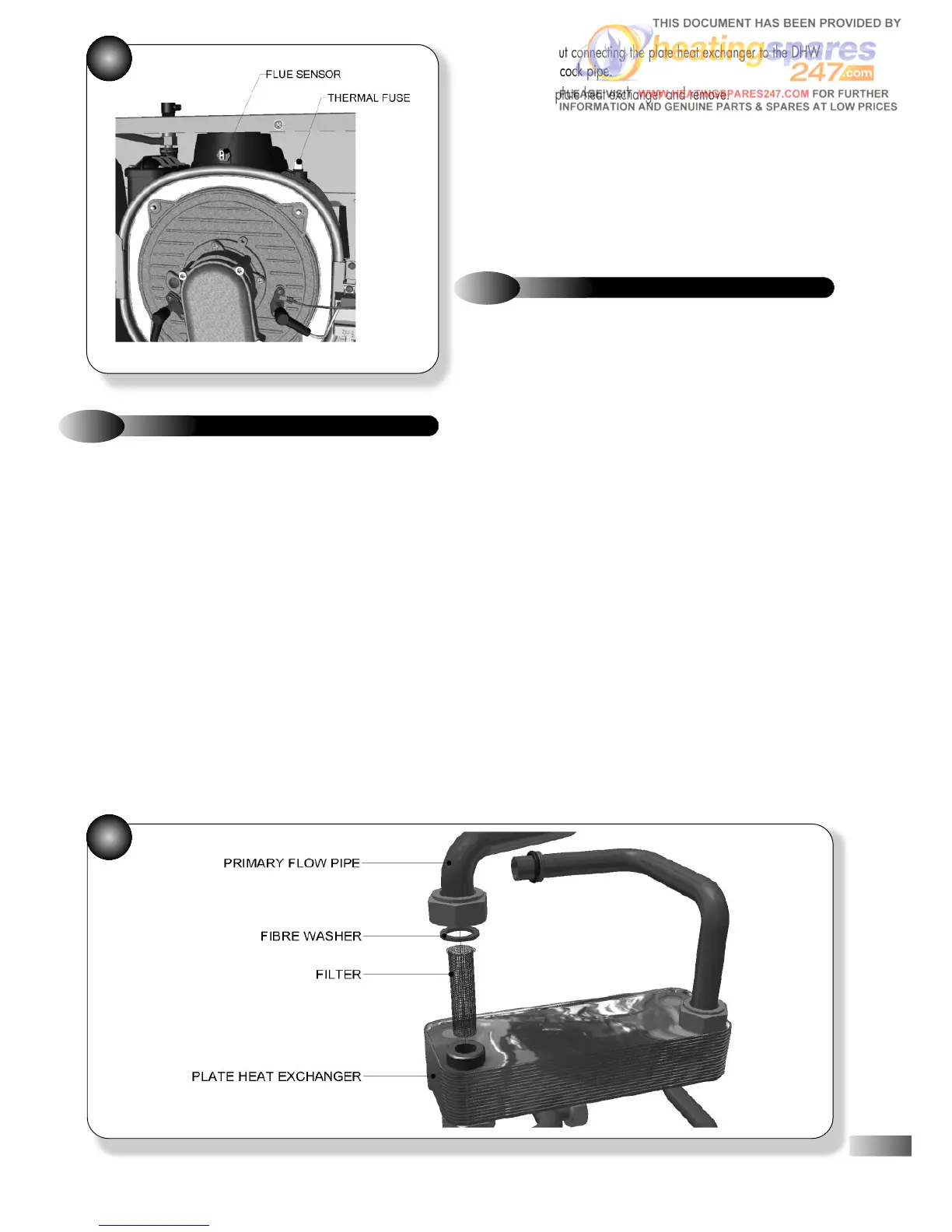 i) Undo the nut connecting the plate heat exchanger to the DHW