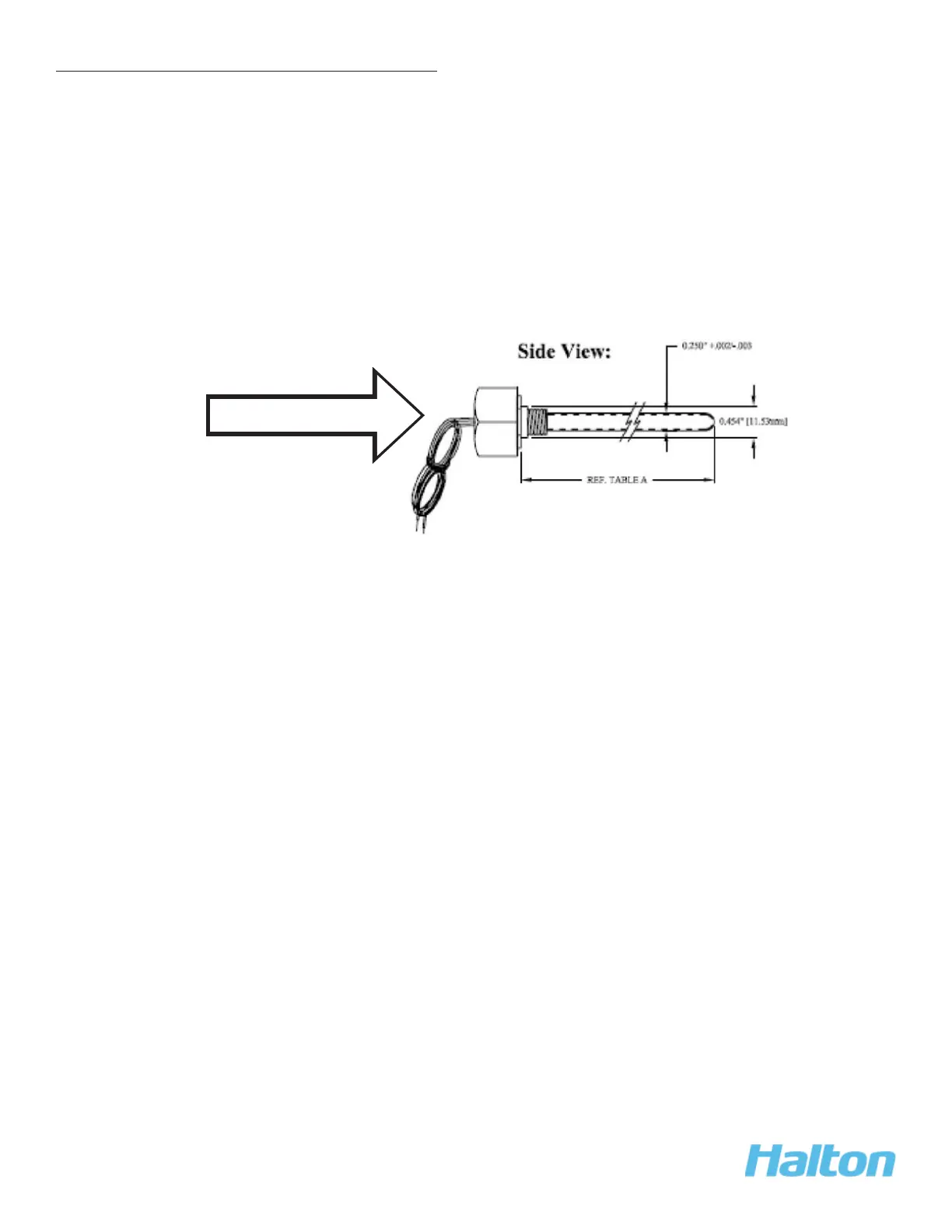 Replace the defective temperature probe with a replacement (Halton Part # 17641)