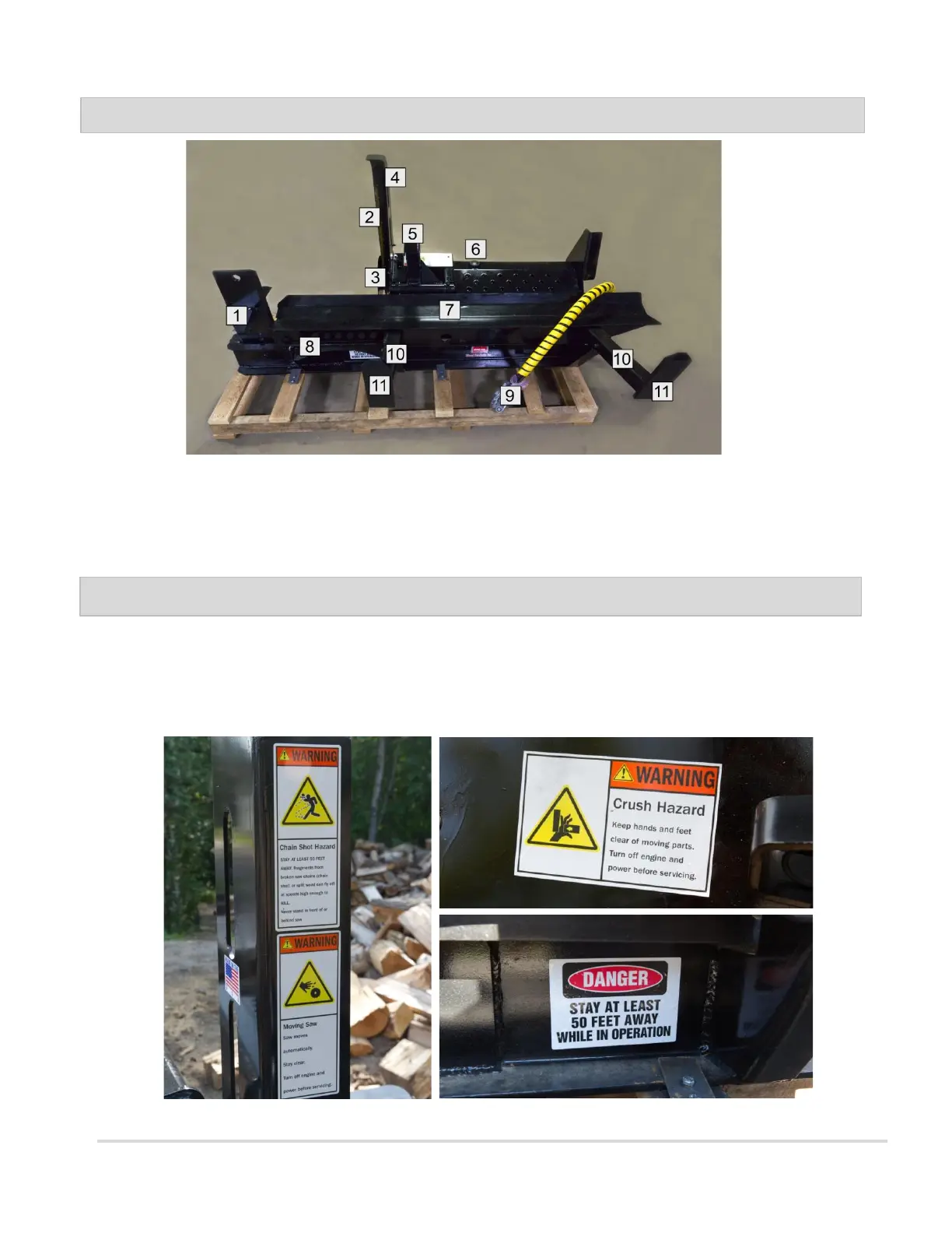 Your HWP-120 Firewood Processor carries prominent labels as reminders for its proper and safe