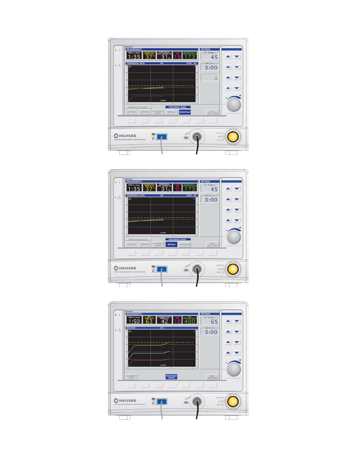 ADVANCED SETTINGS Mode - MULTI-COOLED RF1 SETTINGS State
