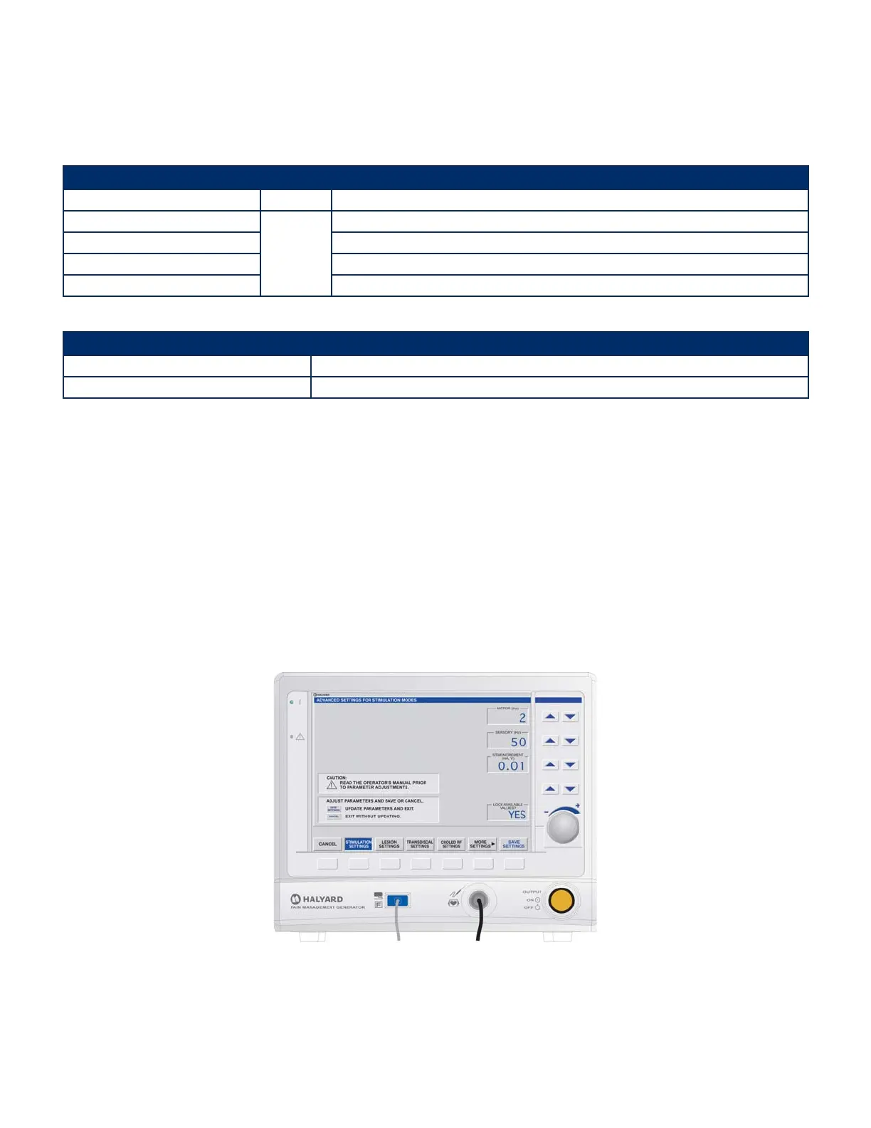 RF/Stimulus Output ON/OFF Indicator The indicator is not illuminated during the ADVANCED SETTINGS mode.