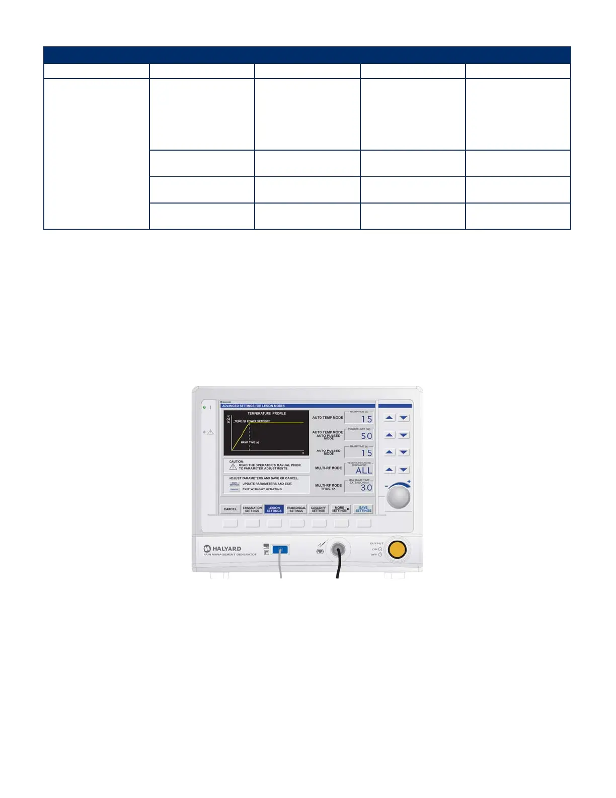 • This screen allows adjustment of the initial RAMP TIME taken by the AUTO TEMP LESION and AUTO PULSED LESION modes to attain the SET TEMPERATURE.