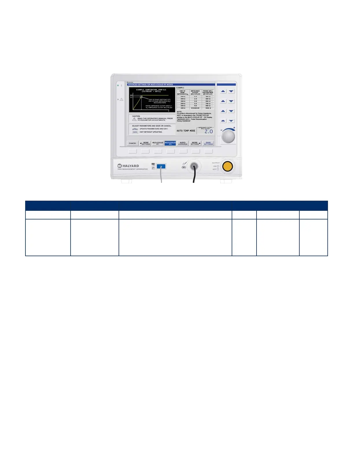 • This screen allows adjustment of the IMPEDANCE CUTOFF MULTIPLIER in AUTO TEMP mode.