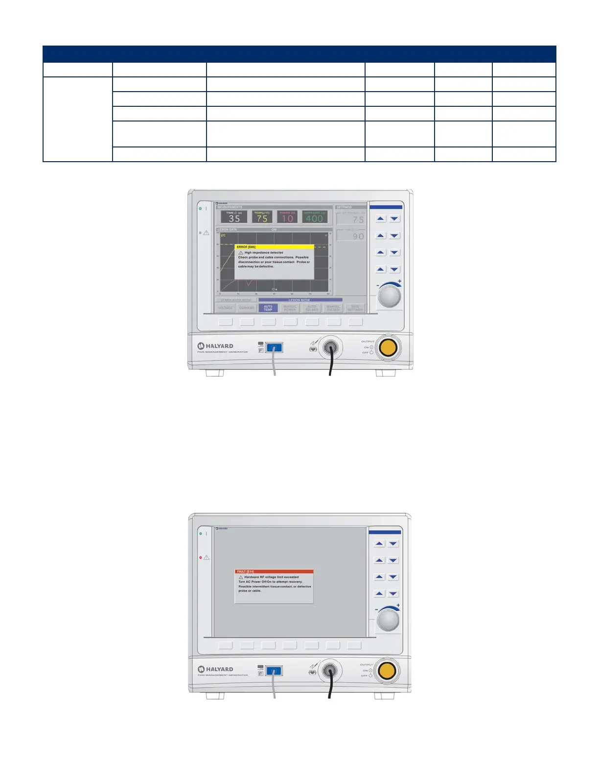 • Yellow “error” indicator will display on screen.