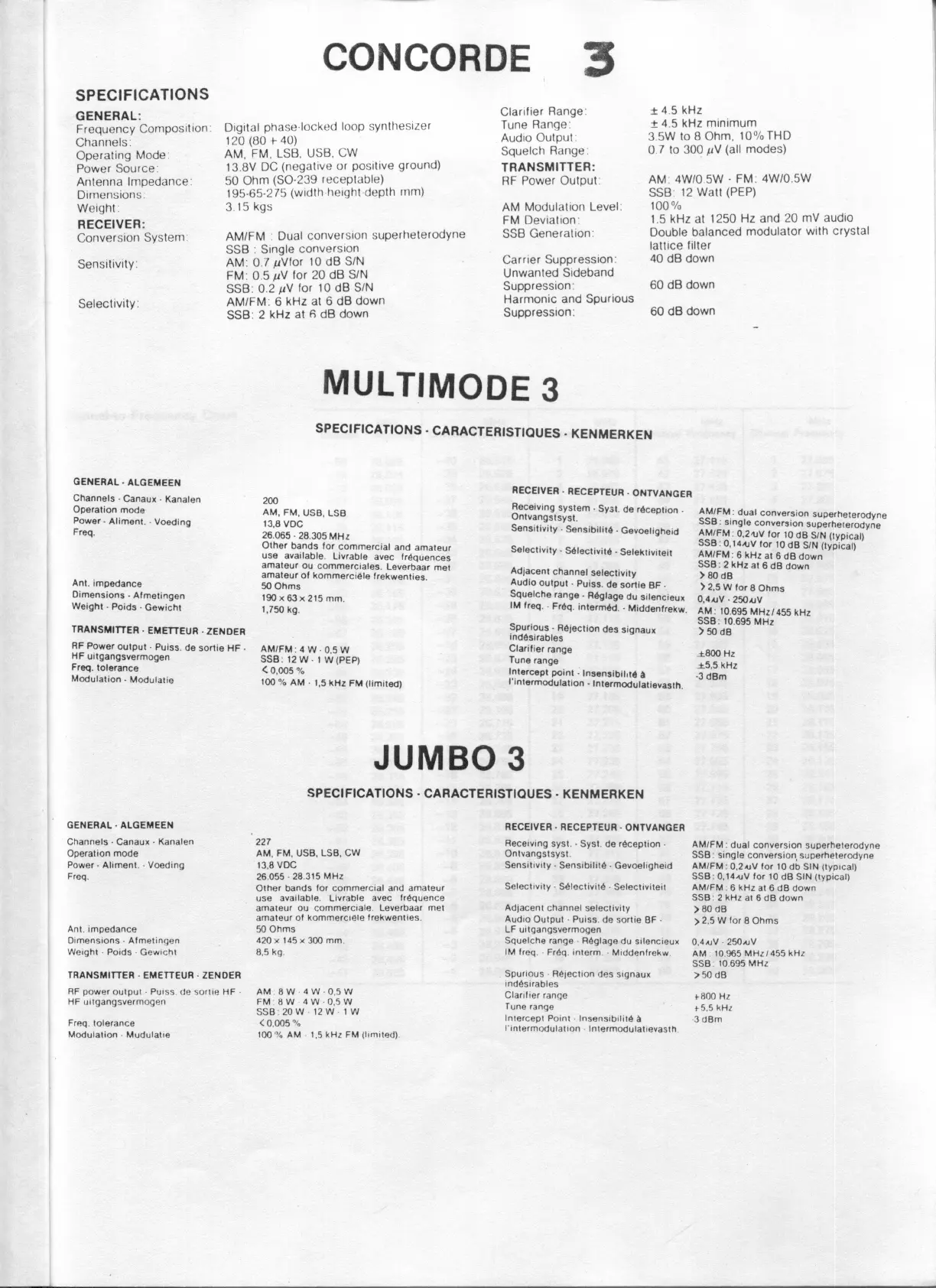 Ham International Multimode 3 - Specifications; Concorde 3; Multimode 3; Jumbo 3