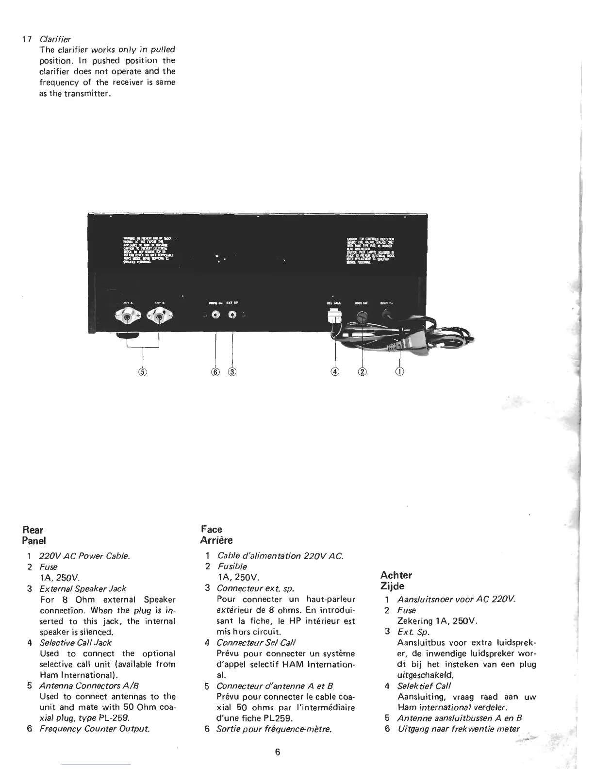 Ham JUMBO - Rear Panel Connections; Power Input, Fuse, and Speaker Output; Antenna Connectors and Auxiliary Jacks; Clarifier Circuit Operation
