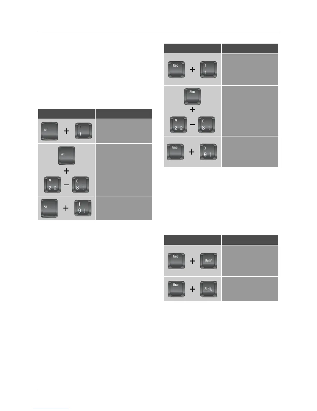 the modes using the following key combination: