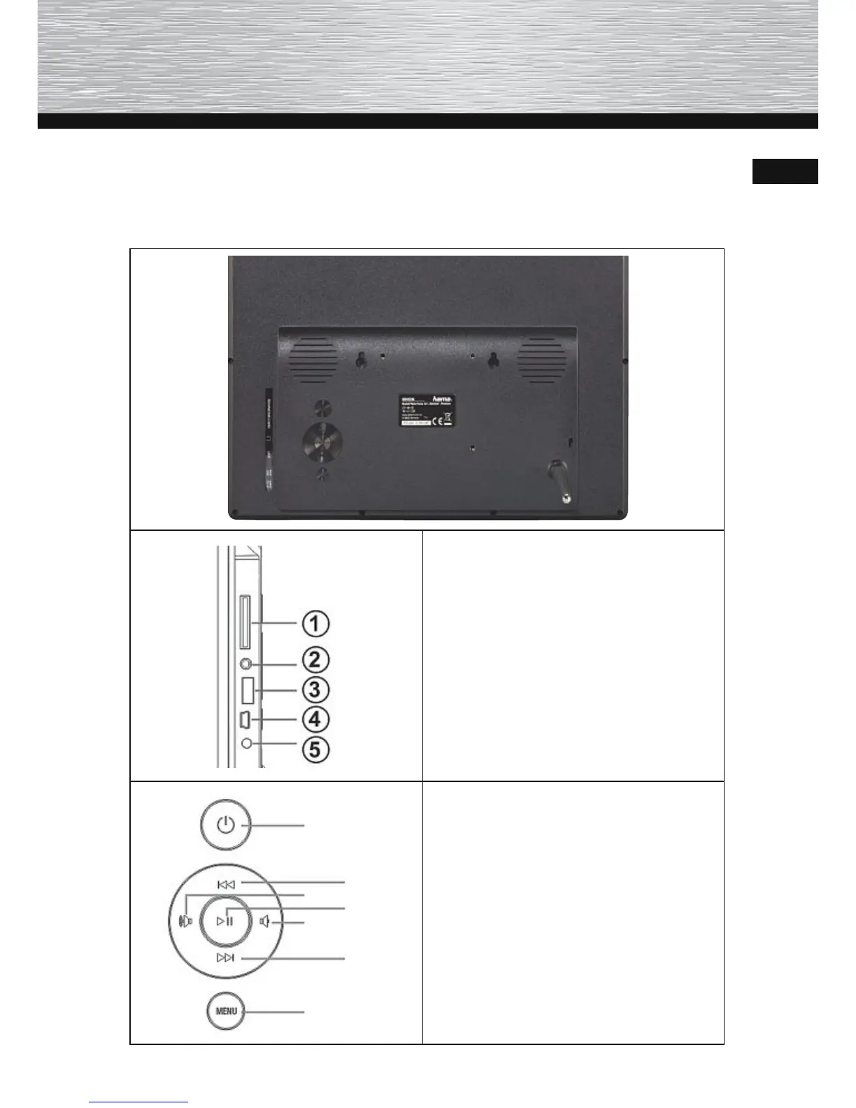 Hama 121SLP - Aufbau und Funktion; Digitaler Bilderrahmen; (Rückansicht)