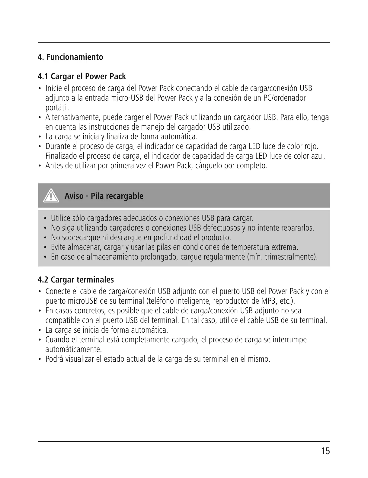 • Conecte el cable de carga/conexión USB adjunto con el puerto USB del Power Pack y con el