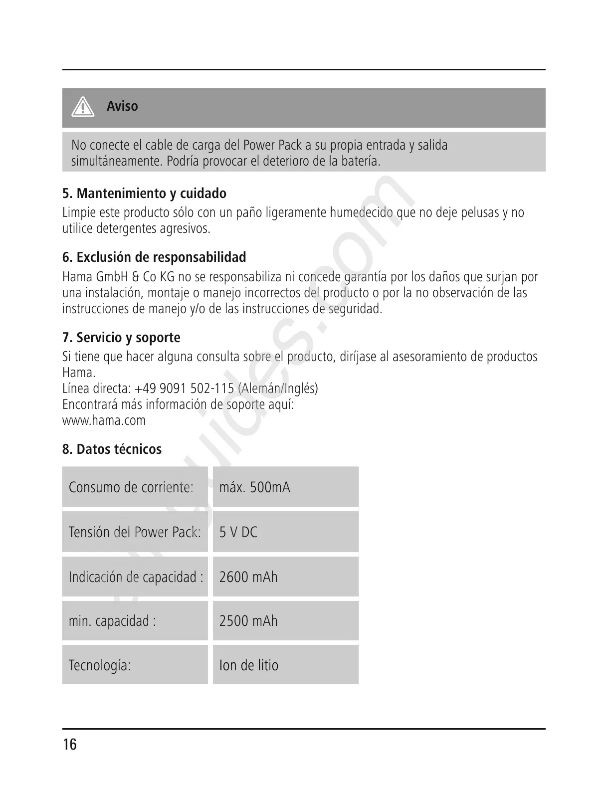 Hama GmbH & Co KG no se responsabiliza ni concede garantía por los daños que surjan por