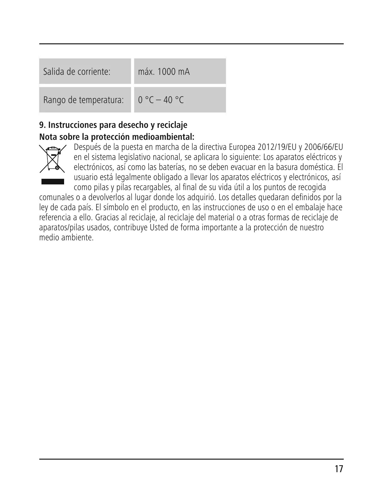 9. Instrucciones para desecho y reciclaje