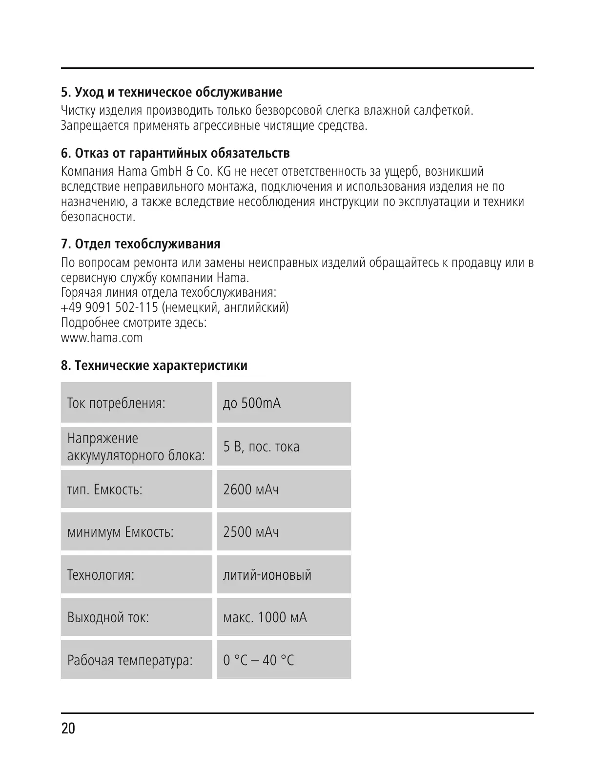 5. Уход и техническое обслуживание