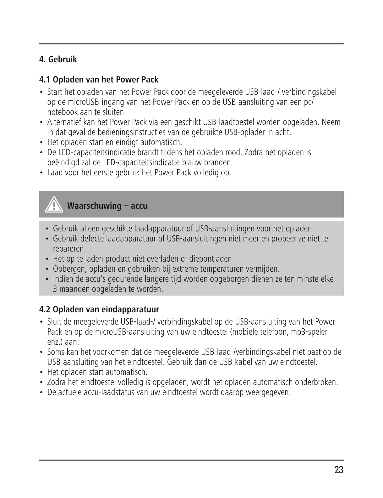 4.1 Opladen van het Power Pack
