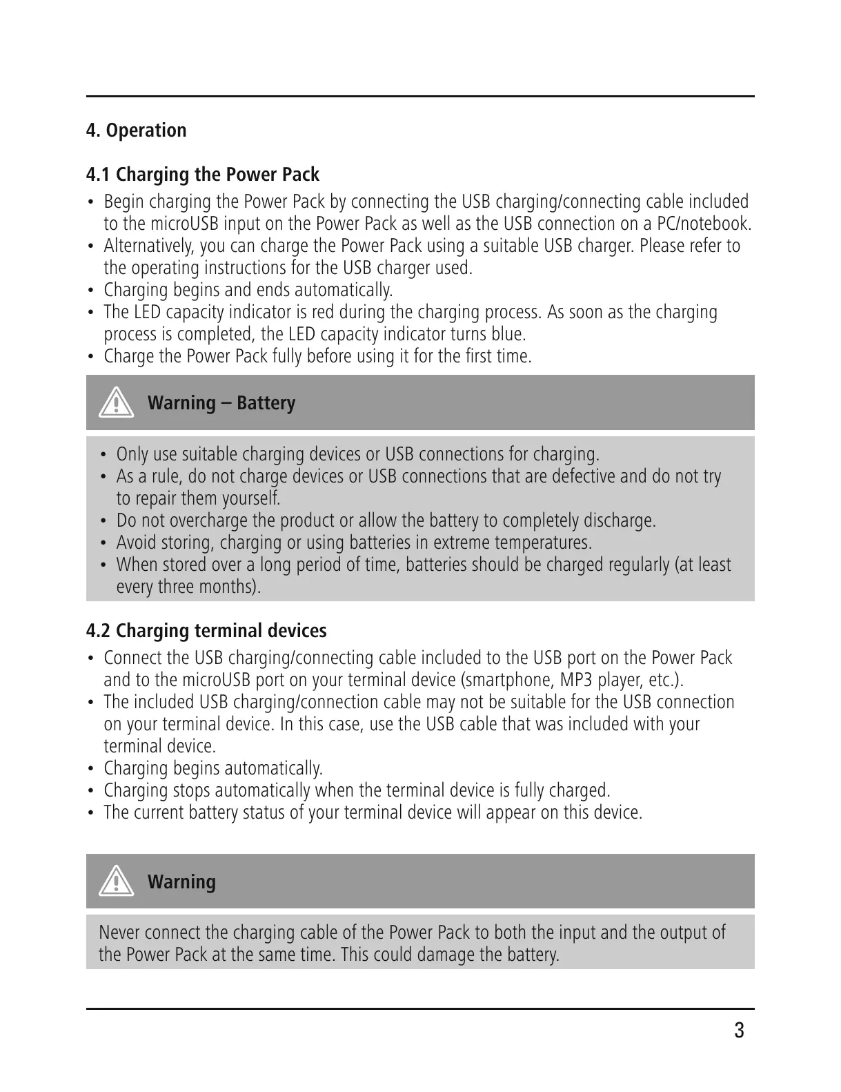 • As a rule, do not charge devices or USB connections that are defective and do not try