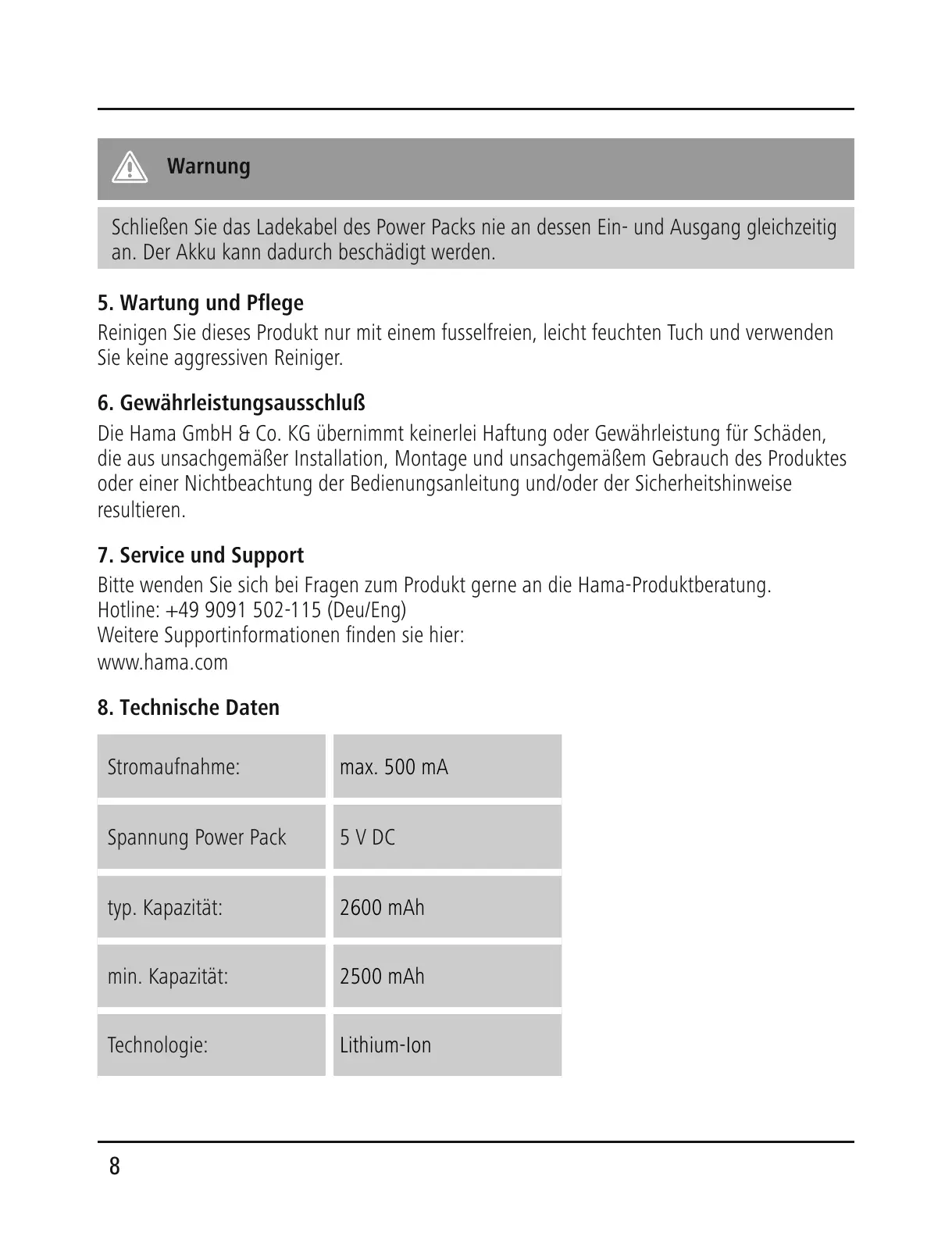 Die Hama GmbH & Co. KG übernimmt keinerlei Haftung oder Gewährleistung für Schäden,