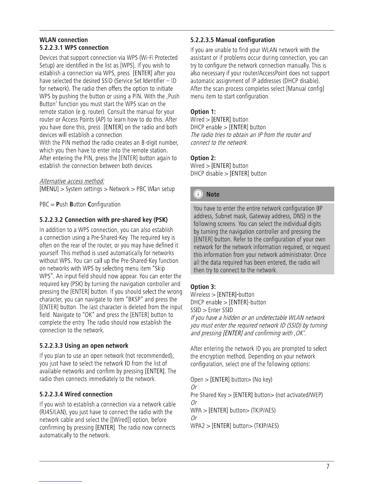 Hama DIT2000 - WPS Connection; Using an Open Network; Wired Connection; Manual Configuration