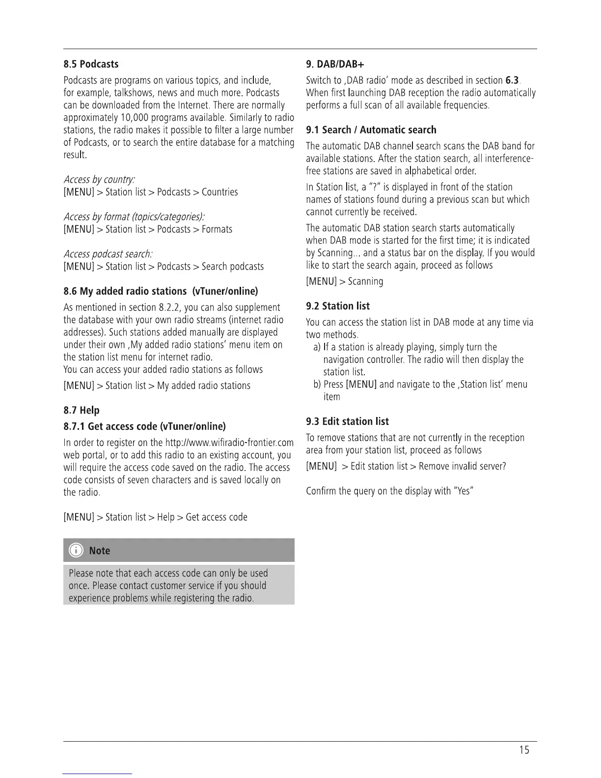 Hama DIT2000 - Podcasts; My Added Radio Stations; Help; Search;Automatic Search