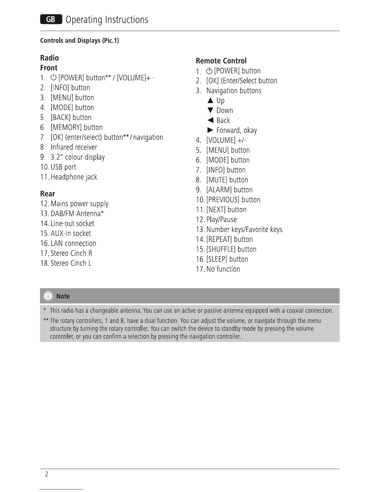 Hama DIT2000 - Operating Instructions; Controls and Displays; Front; Rear