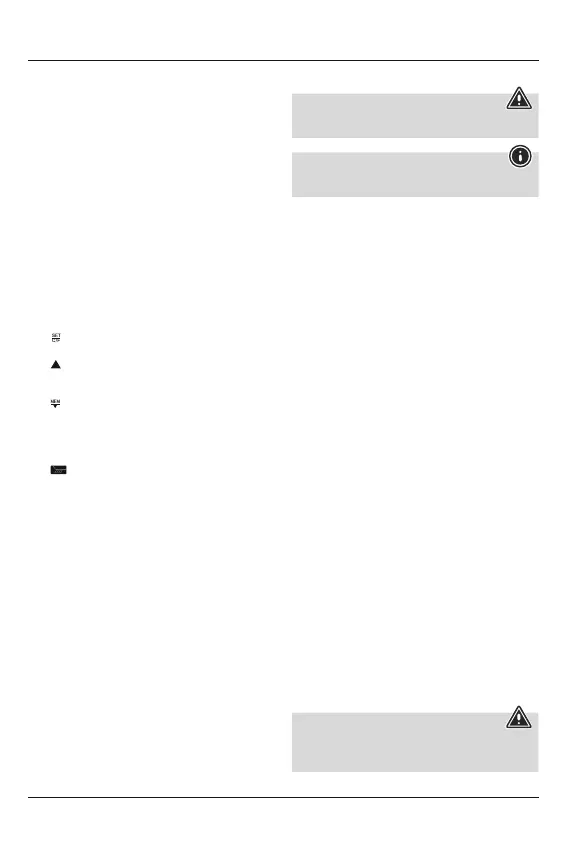 =switches between °C and °F /sets the time and date