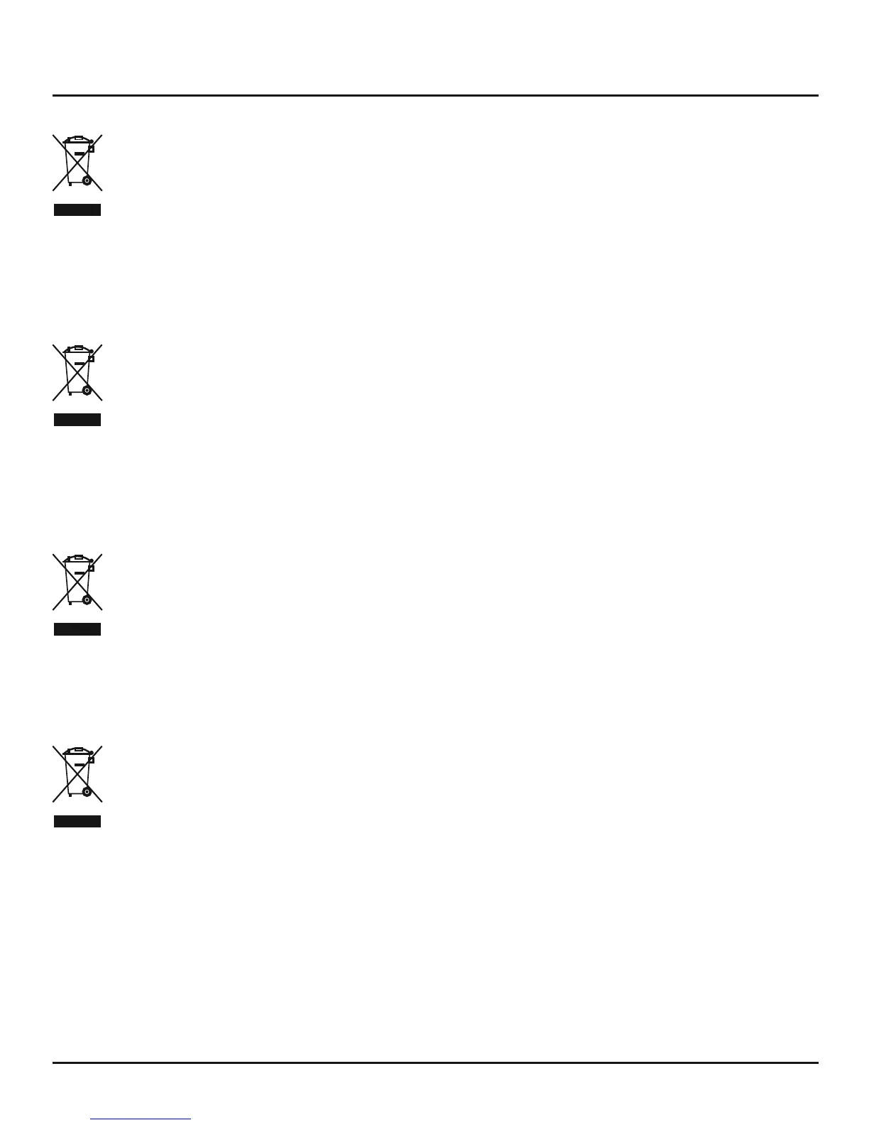 Elektrikli ve elektronik cihazlarla piller normal evsel çöpe atılmamalıdır. Tüketiciler için, artık çalışmayan