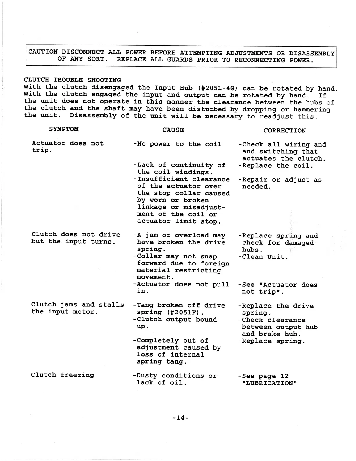 Hamer 125 - CLUTCH TROUBLESHOOTING; Actuator Fails to Trip; Clutch Input;Output Issues; Clutch Freezing Causes