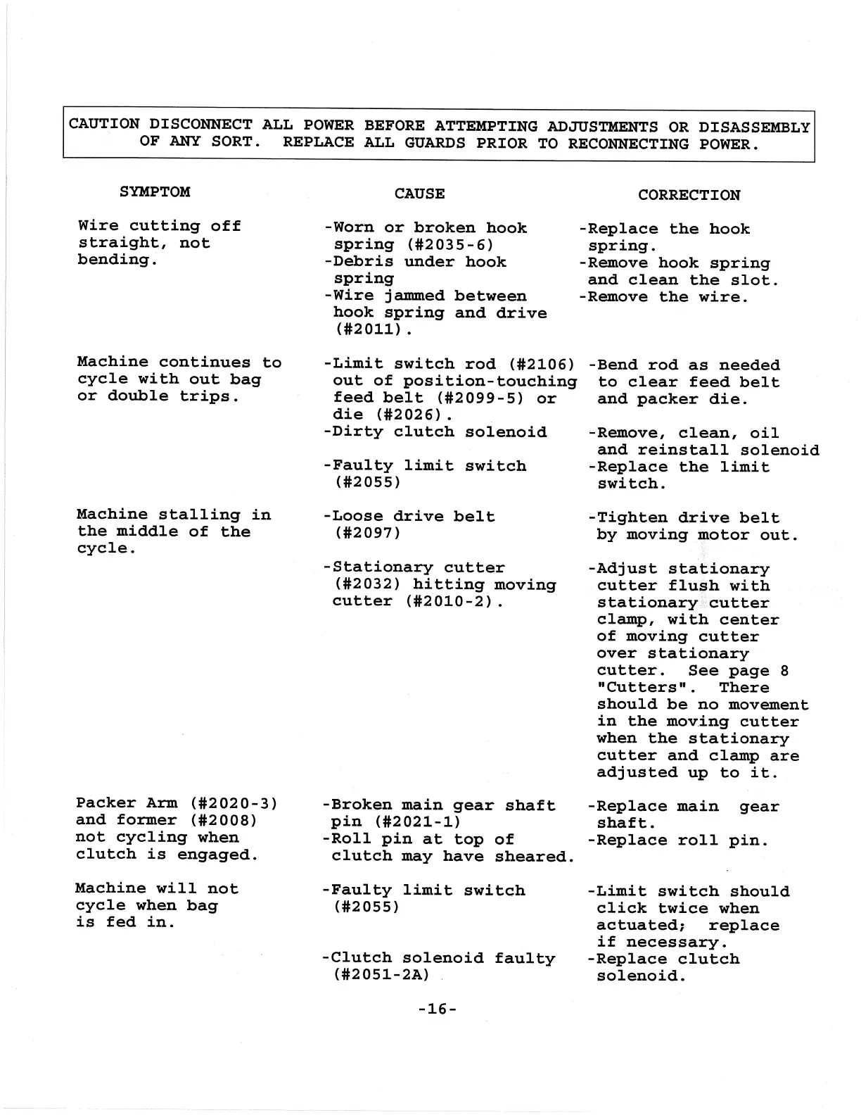 Hamer 125 - MACHINE PERFORMANCE TROUBLESHOOTING; Wire Cutting Issues; Cycle Interruption Problems; Machine Stalling Resolution